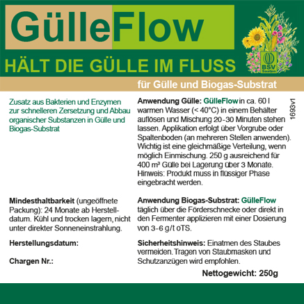 Gülleflow - Zusatz zum Abbau organischer Substanz in Gülle, Festmist und als Zusatz für Biogasanlagen.